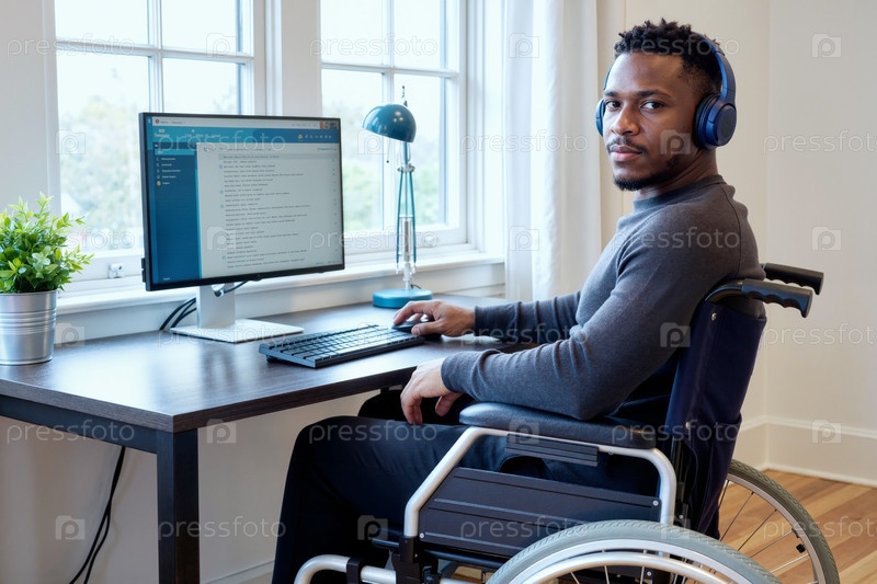 Портрет чернокожего человека с инвалидностью, работающего в министерстве внутренних дел