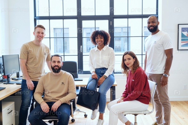 Портрет разнообразной бизнес-команды, позирующей в современном офисе