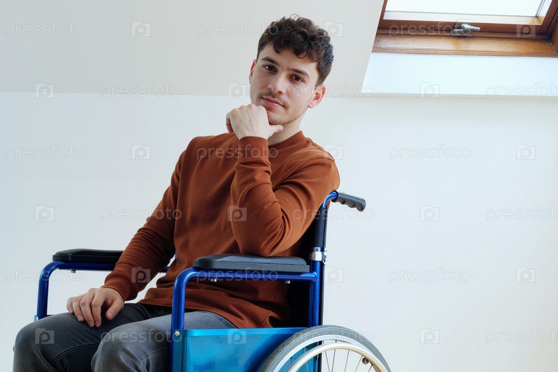 Портрет взрослого мужчины с инвалидностью, сидящего в инвалидном кресле