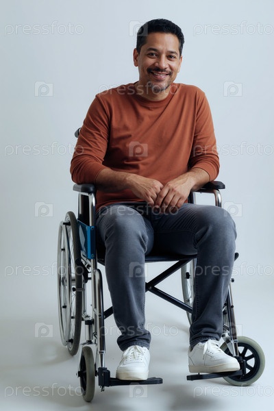 Портрет испаноязычного мужчины средних лет с инвалидностью, улыбающегося