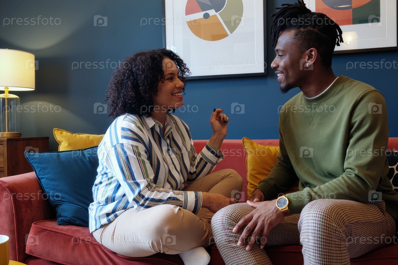 Чернокожий мужчина и женщина разговаривают дома о благополучии отношений