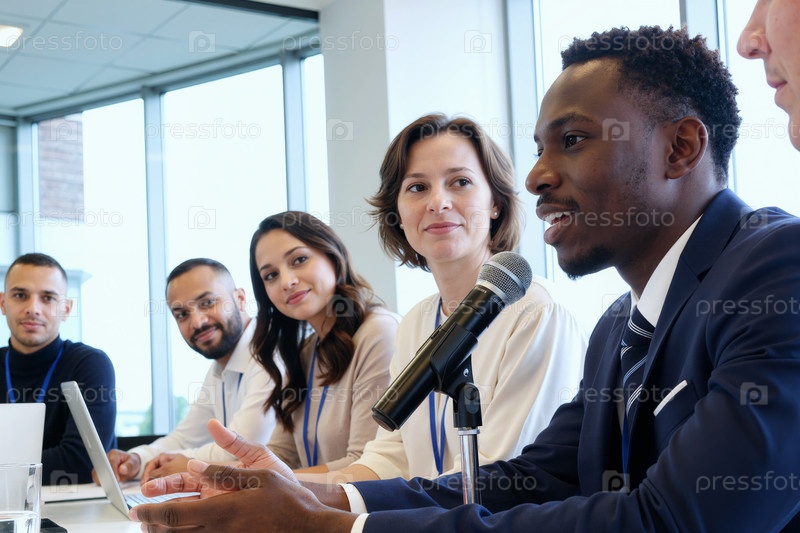 Мультиэтнические молодые взрослые, участвующие в обсуждении деловых встреч