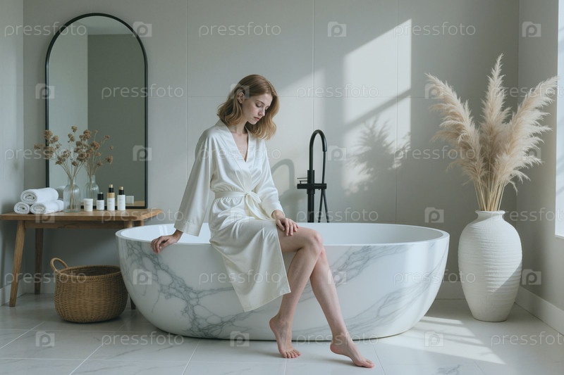 Взрослая женщина отдыхает у ванны для роскошной спа-концепции по уходу за кожей