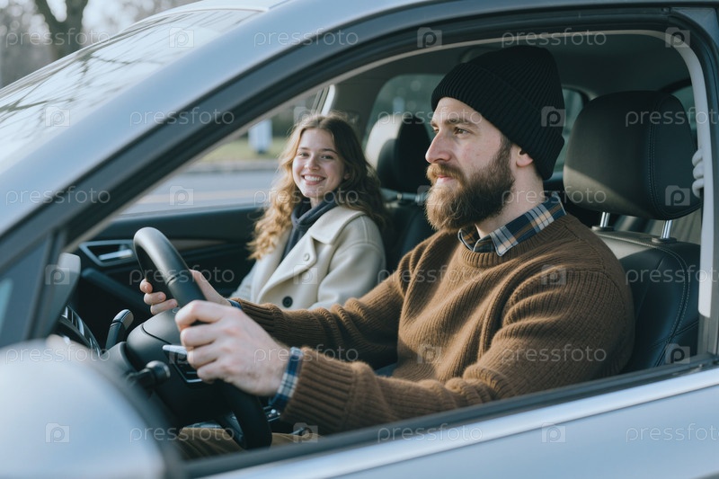Мужчина средних лет управляет автомобилем с девочкой-подростком во время семейной поездки