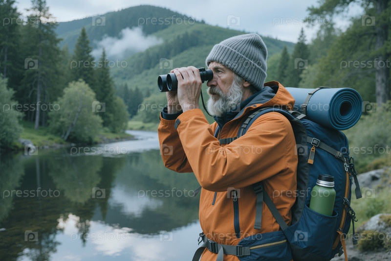 Старший человек Пешие прогулки и наблюдение за птицами в горном заповеднике