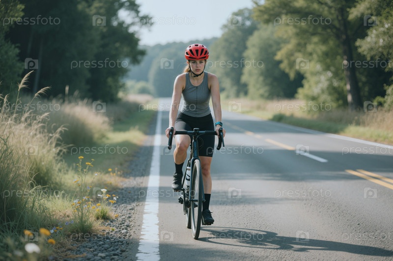 Портрет взрослой женщины, едущей на велосипеде по сельской дороге для фитнеса