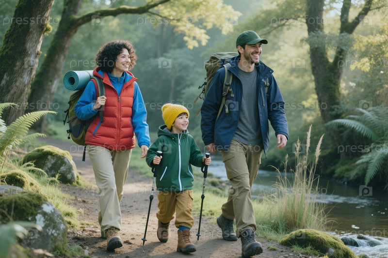 Лесная тропа для отдыха на открытом воздухе и маркетинга семейных путешествий