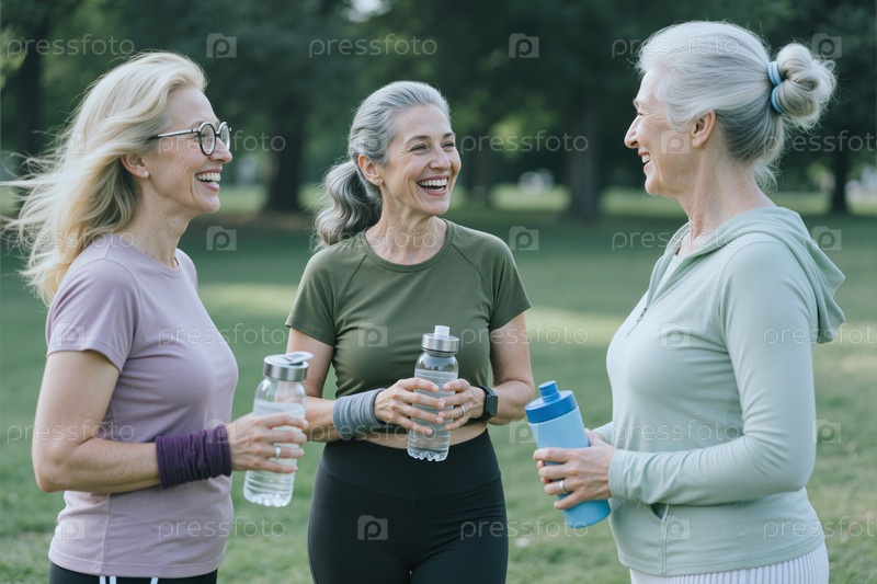 Женщины, общающиеся после тренировки фитнеса на открытом воздухе