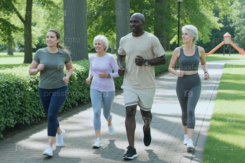 Различные взрослые бегают в парке для активного здорового образа жизни