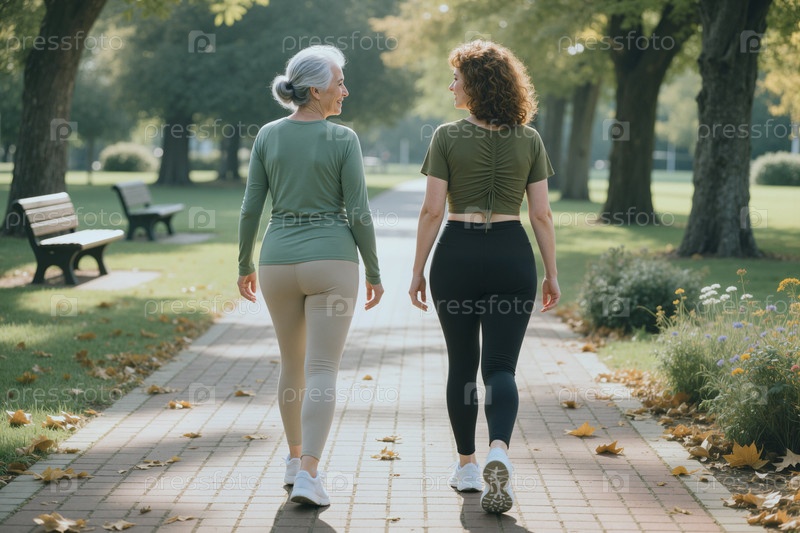 Пожилая женщина и взрослая женщина ходят на фитнес в парке