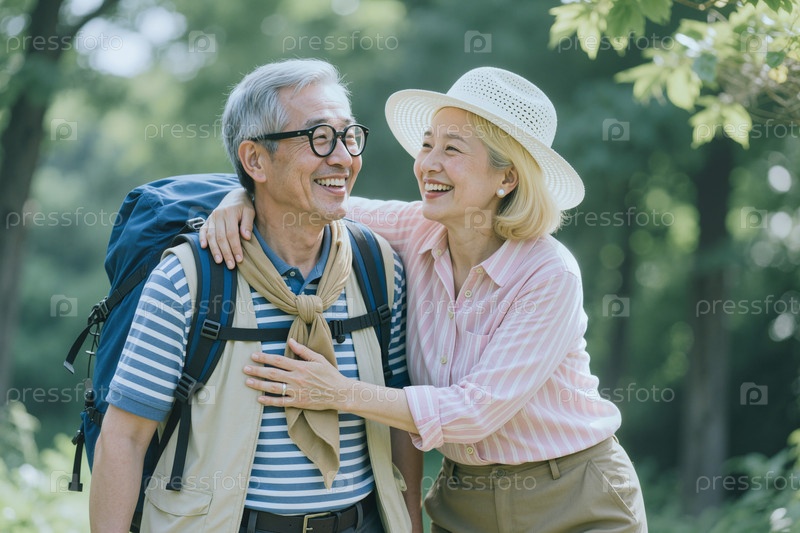 Старшая азиатская пара вместе ходит в походы для активного пенсионного образа жизни