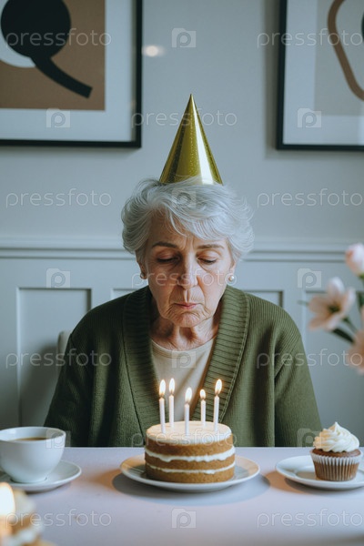 Старшая женщина дует в рождественские свечи во время торжества дома соло