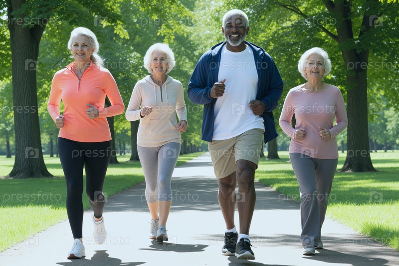 Различные пожилые люди бегают в парке для активного здорового образа жизни