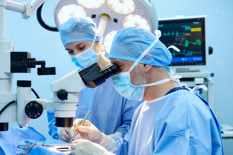 Кавказский мужчина среднего возраста, выполняющий хирургическую операцию, ассистирующая медсестра