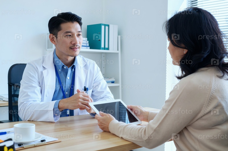 Азиатский мужчина Молодой взрослый Доктор Консультации Кавказская женщина среднего возраста Пациент