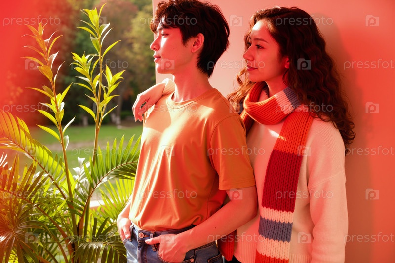 Молодая взрослая азиатская пара стоит вместе возле окна, наслаждаясь солнечным светом