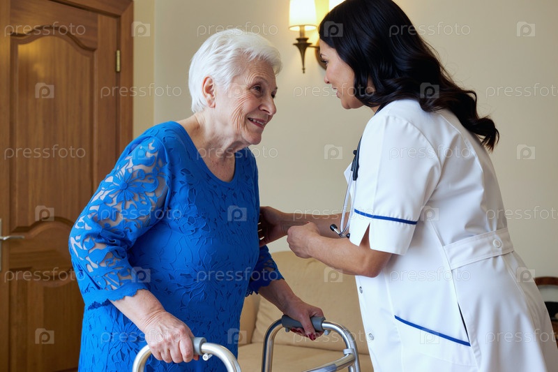 Старшая женщина улыбается, разговаривая с молодой взрослой медсестрой