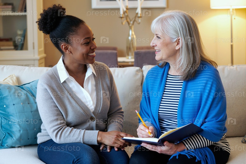 Женщина среднего возраста консультирует молодого взрослого черную женщину в помещении