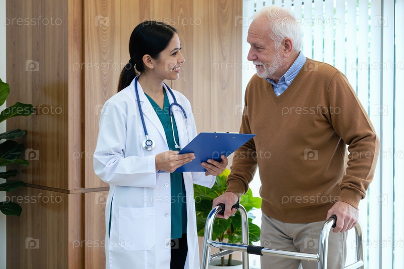Среднего возраста Женщина Доктор Консультации Старший мужчина Используя ходока