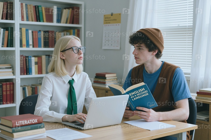 Молодая женщина обучает подростка изучению английского языка