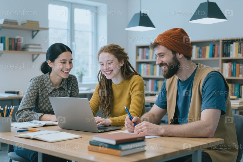 Группа молодых студентов из разных этнических групп, сотрудничающих в проекте Indoors Group