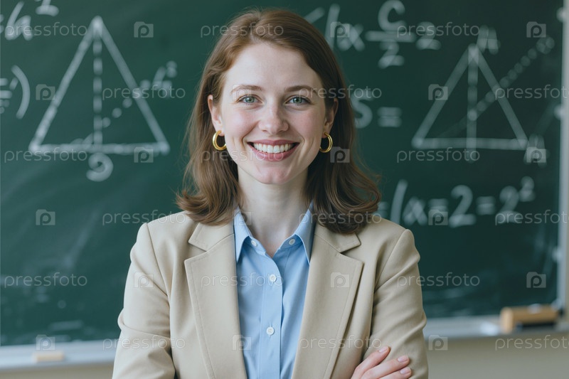 Портрет молодой женщины, улыбающейся в классной обстановке