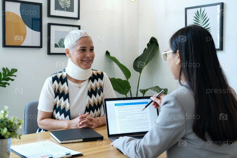 Взрослая женщина, носящая шейную скобку Консультационное консультирование Профессиональная женщина