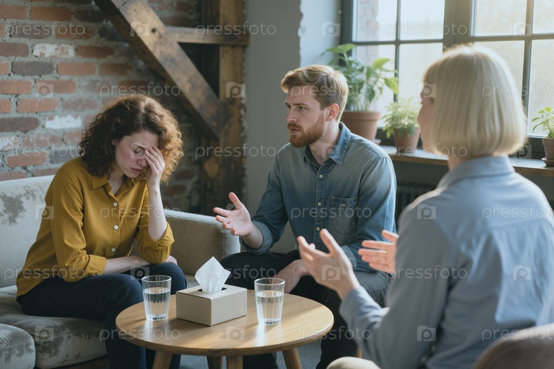 Взрослые пары, посещающие консультационную сессию по отношениям с терапевтом