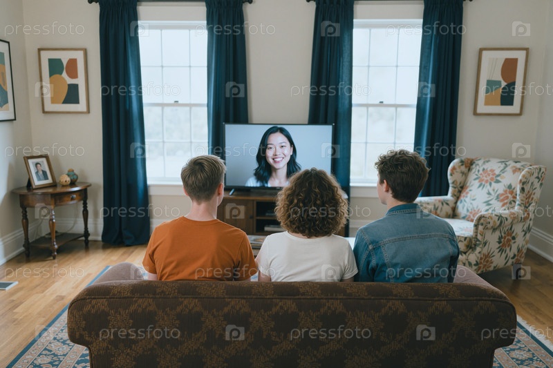 Подростки видео звонят женщине по телевизору для семейной коммуникации