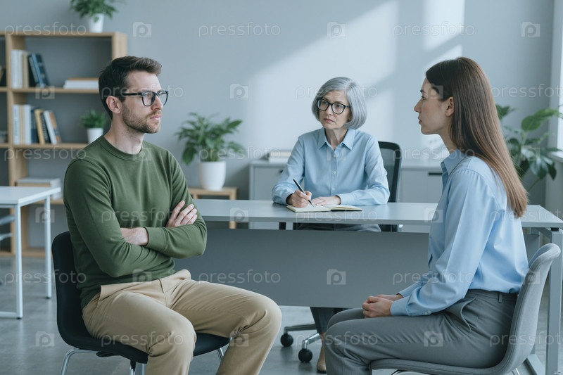 Взрослый терапевт консультирует взрослую пару во время сеанса