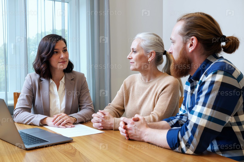Деловая женщина, консультирующая старшую женщину и мужчину во время консультации