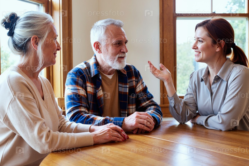 Встреча старших пар Женщина-консультант обсуждает планирование выхода на пенсию