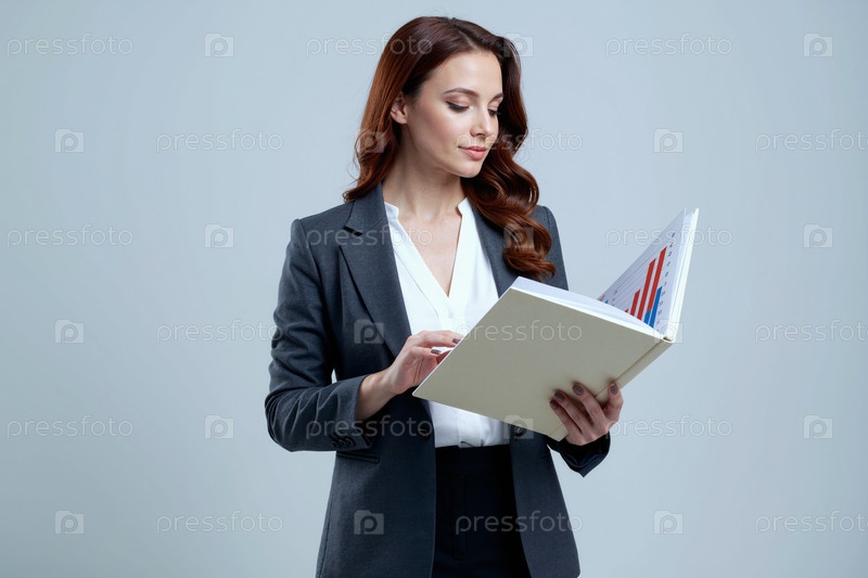 Взрослая бизнесвумен рассматривает отчет о продажах для корпоративного планирования