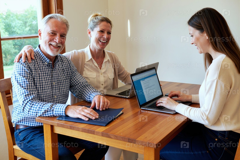 Портрет старшей пары, встречающейся с женщиной для финансового планирования