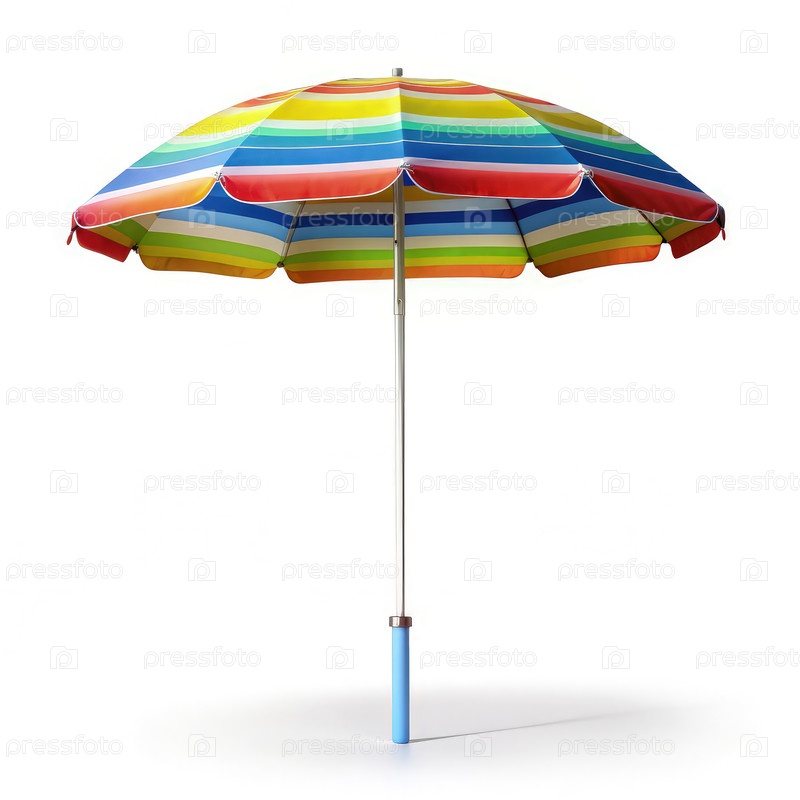 Ярко окрашенный зонтик на чистом белом фоне, идеально подходит для защиты от солнца на пляже во время летнего досуга