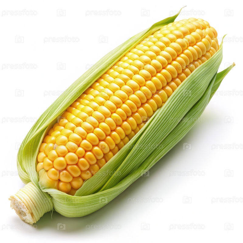 Одно ухо желтой кукурузы, изолированное на белом фоне