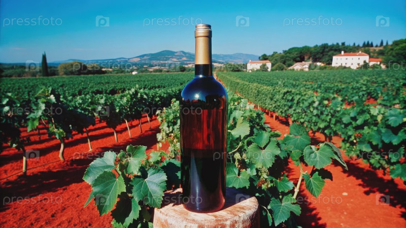 Бутылка вина отдыхает на винограднике Прованса