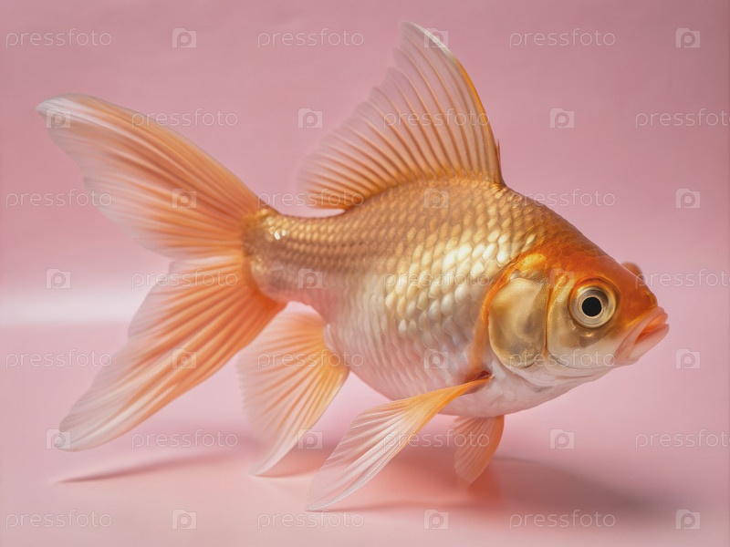 Одинокая золотая рыбка со стандартными весами плавает на розовом фоне