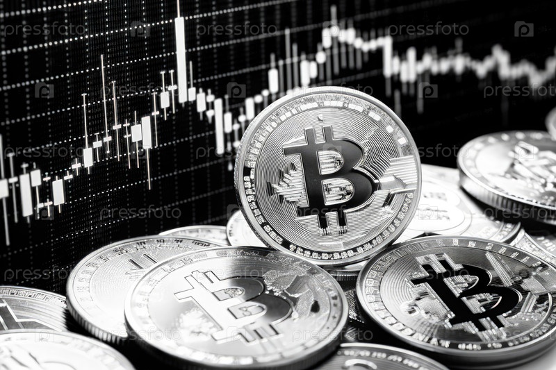 Серебряные биткойн-монеты отдыхают на графике свечей. генеративный AI