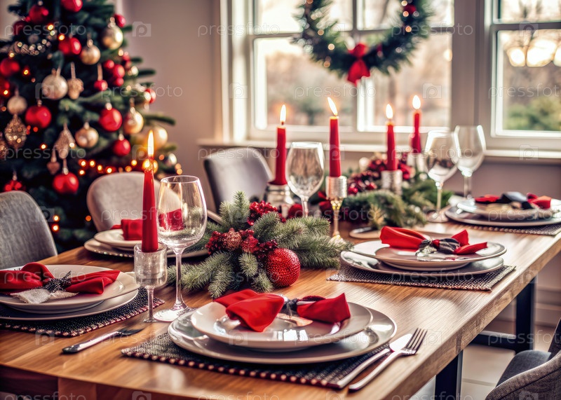 Набор праздничных обеденных столов для радостного семейного пиршества в этот рождественский сезон