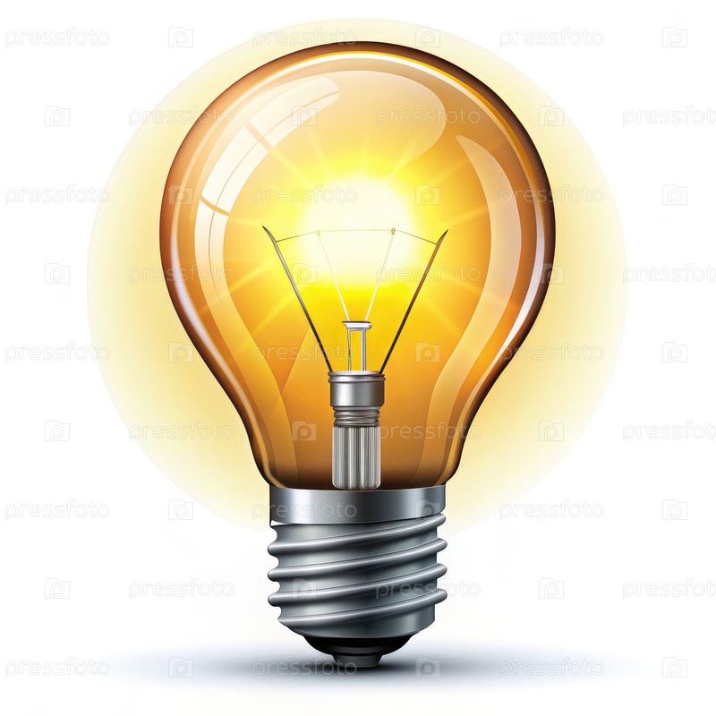 Ярко-желтая лампочка освещает белый фон