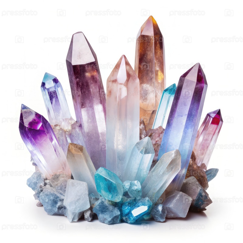 Вибрирующие кристаллы, художественно расположенные на белом фоне