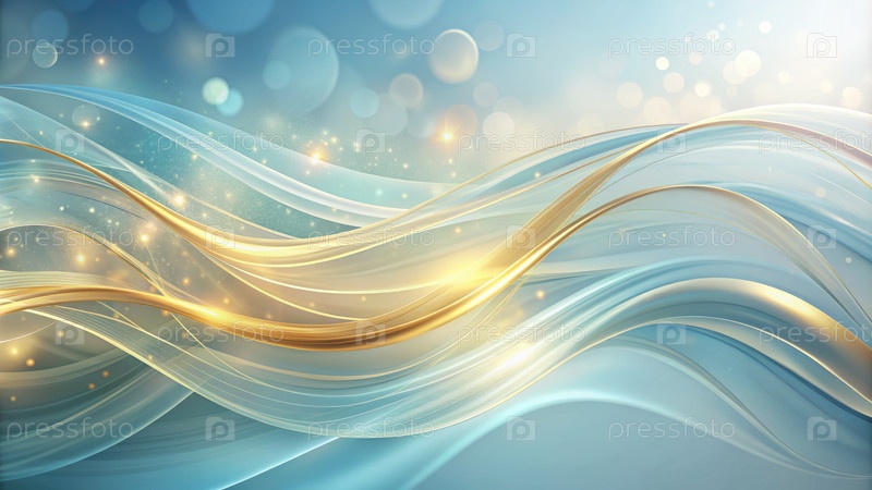 Абстрактные голубые и золотые волны с светящимся светом. генеративный ИИ