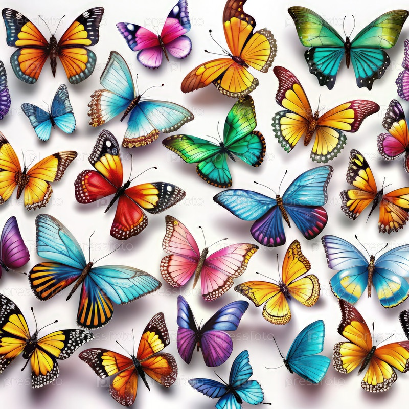 Цветные бабочки на белом фоне