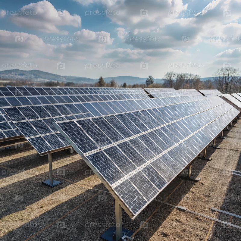 Обширное поле солнечной панели в сельской местности в солнечный день. генеративный экспансивный ИИ