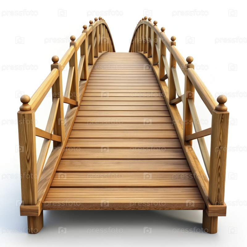 Деревянный мост на белом фоне