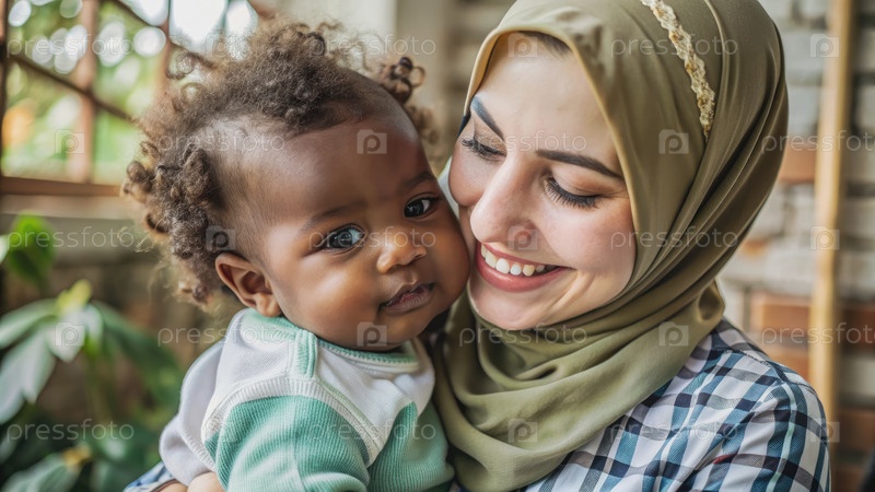 Счастливая молодая мать, держащая ребенка в руках. генеративный ИИ