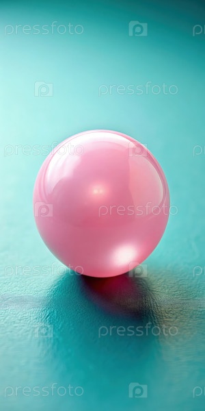 Близкий снимок блестящего розового пузыря, опирающегося на гладкую зеленоватую поверхность, подчеркивая его сферическую форму и отражения в естественном свете