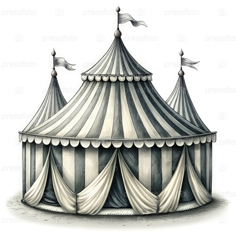 Ручно нарисованный черно-белый элемент дизайна цирковой палатки для классических мероприятий