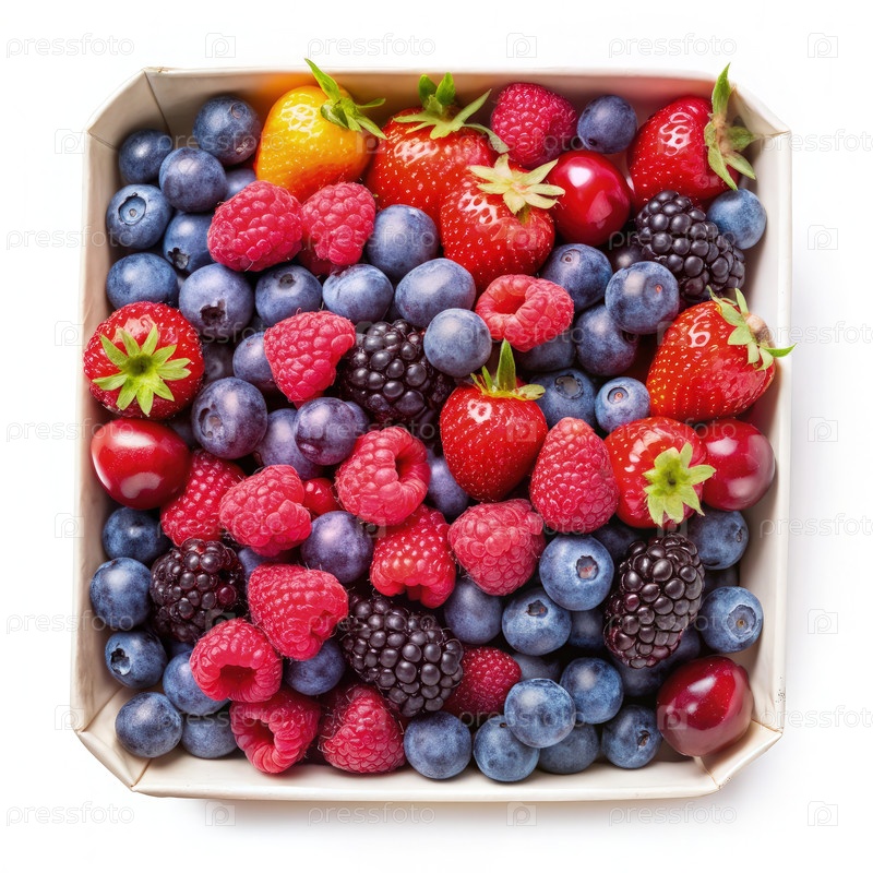 Закрытие коробки, наполненной свежими чернилами, малинами, клубниками и черными ягодами